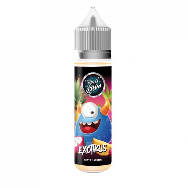 Le packaging de Belgi'Ohm - Exotikus est également remarquable. La bouteille est ornée d'une étiquette colorée et dynamique qui capture parfaitement l'essence des fruits exotiques. Le flacon de 50 ml est équipé d'une pipette pratique pour faciliter le remplissage des réservoirs.